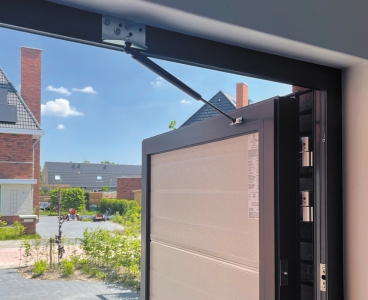 De Duoport bestaat uit twee openslaande deuren die een brede doorgang bieden. De deuren openen soepel en gemakkelijk. Je kunt dankzij de brede passage eenvoudig de garage in en uit met bijvoorbeeld de fiets of scootmobiel. De Duoport Premium kan ook niet-symmetrisch worden geleverd (met een bredere loopdeur). Optioneel is een gasdrukveer toe te passen