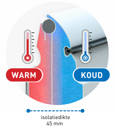 Steeds meer mensen kiezen voor een geïsoleerde garagedeur van Novoferm. Het komt bovendien steeds vaker voor dat de garage meer is dan een opslagruimte. Isoleren is dan altijd een goed idee. Mensen brengen tenslotte veel tijd door op deze plek. Onze openslaande garagedeuren zijn opgebouwd uit 45mm dikke sandwichpanelen ISO 45 premium. Deze panelen zijn thermisch onderbroken. Dit voorkomt zogenoemde koudebruggen die zorgen voor warmteverlies. Het kozijn van de Duoport Premium is tevens standaard thermisch onderbroken.